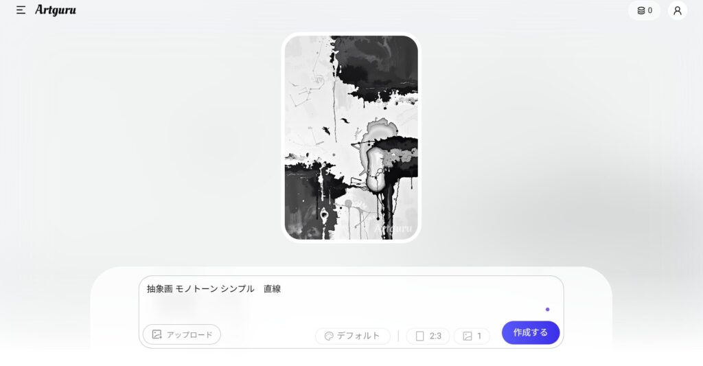 今回は、「抽象画 モノトーン シンプル」と入力しました。